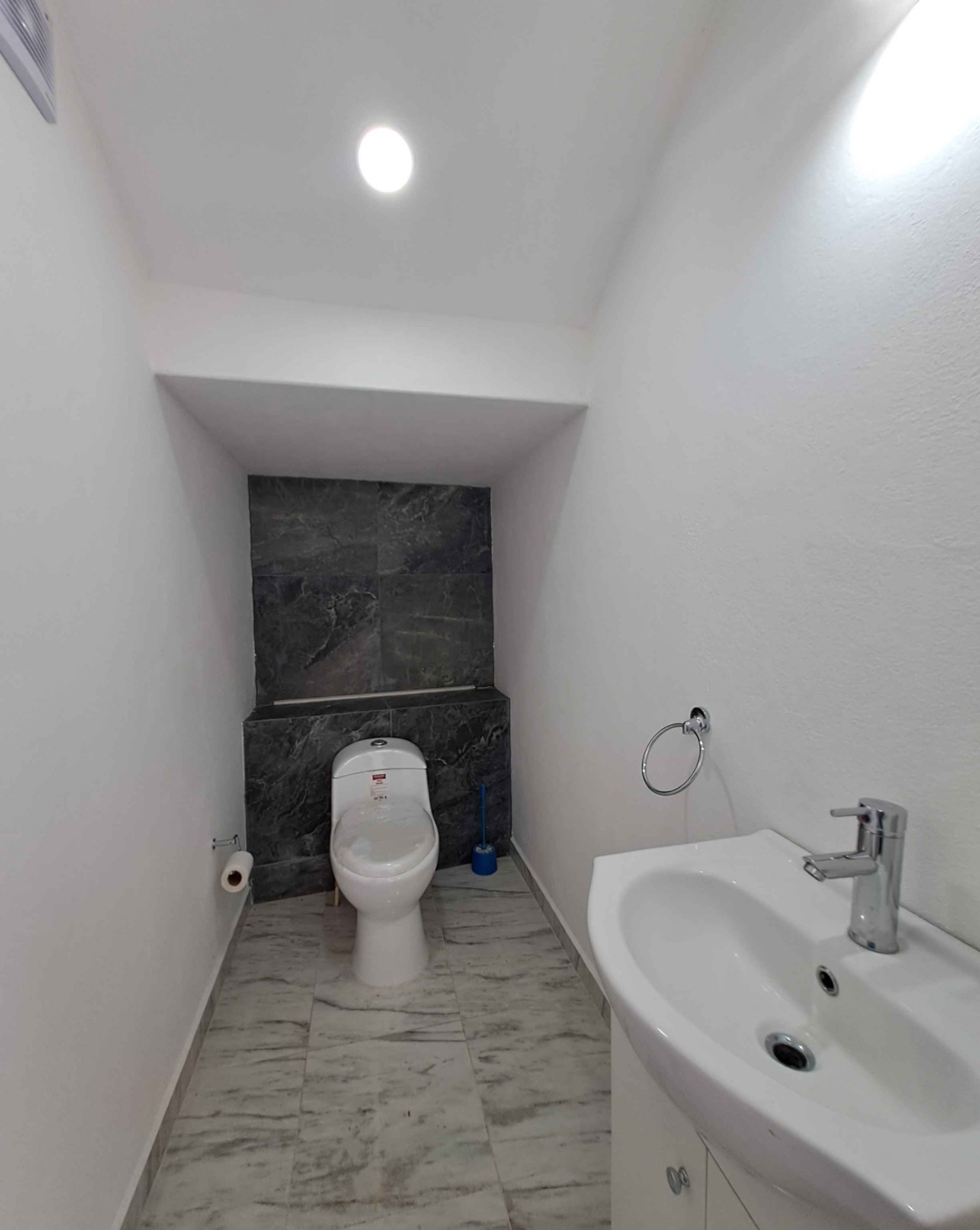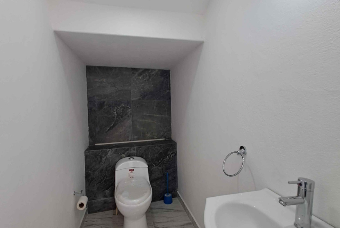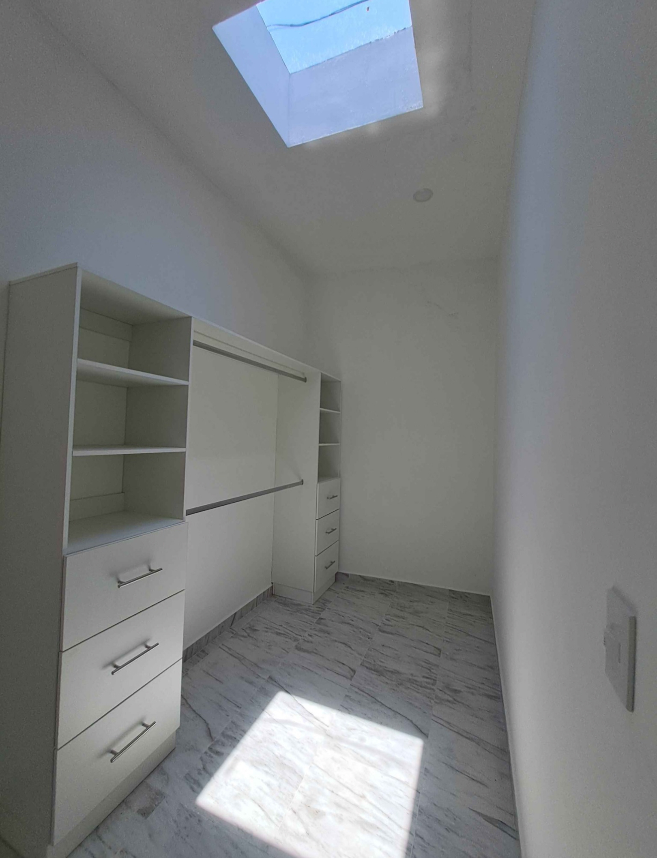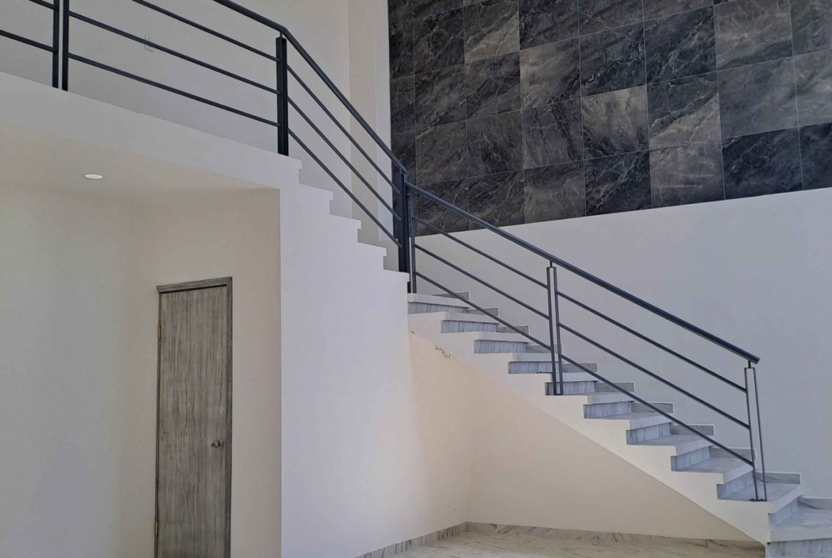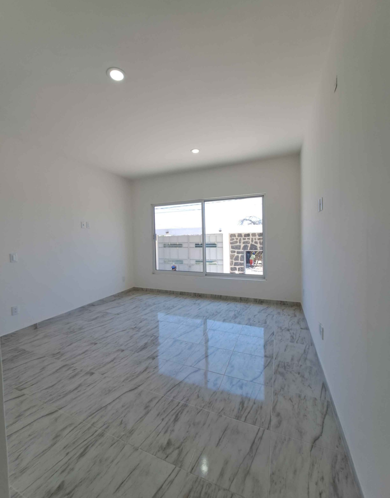 Dispone de 3 recámaras, una de ellas en planta baja, 3 baños y medio, cuarto de lavado, cisterna de 10,000 litros, alberca privada y un pequeño jardín.