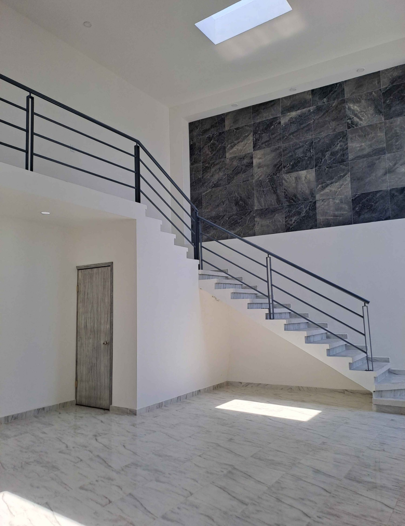 La propiedad cuenta con 274 m² de terreno y 255 m² de construcción, con una distribución moderna que incluye sala y comedor a doble altura, cocina equipada con barra y excelente iluminación natural.