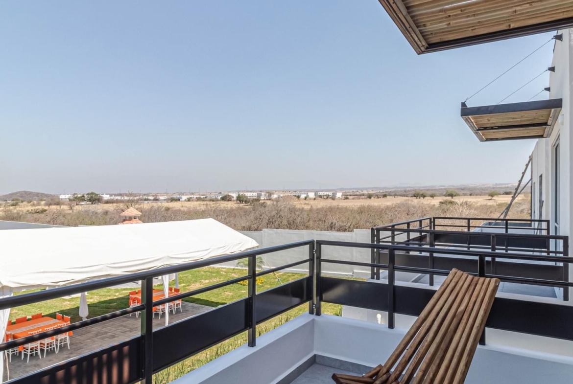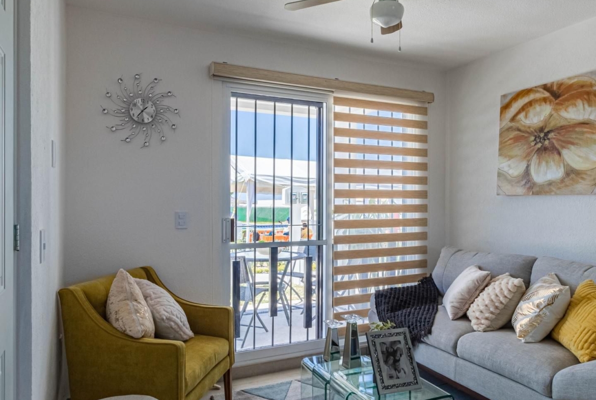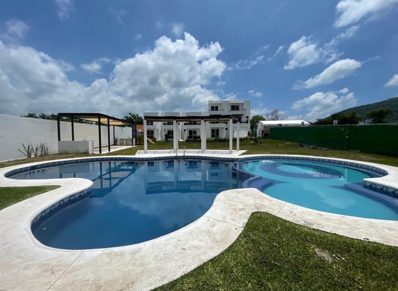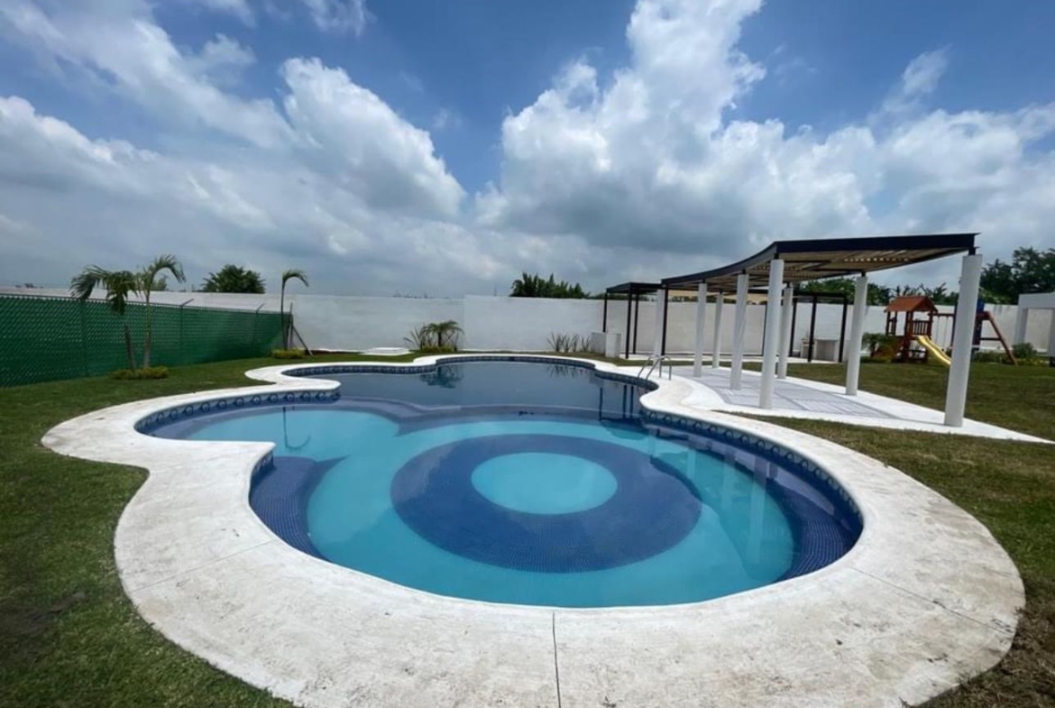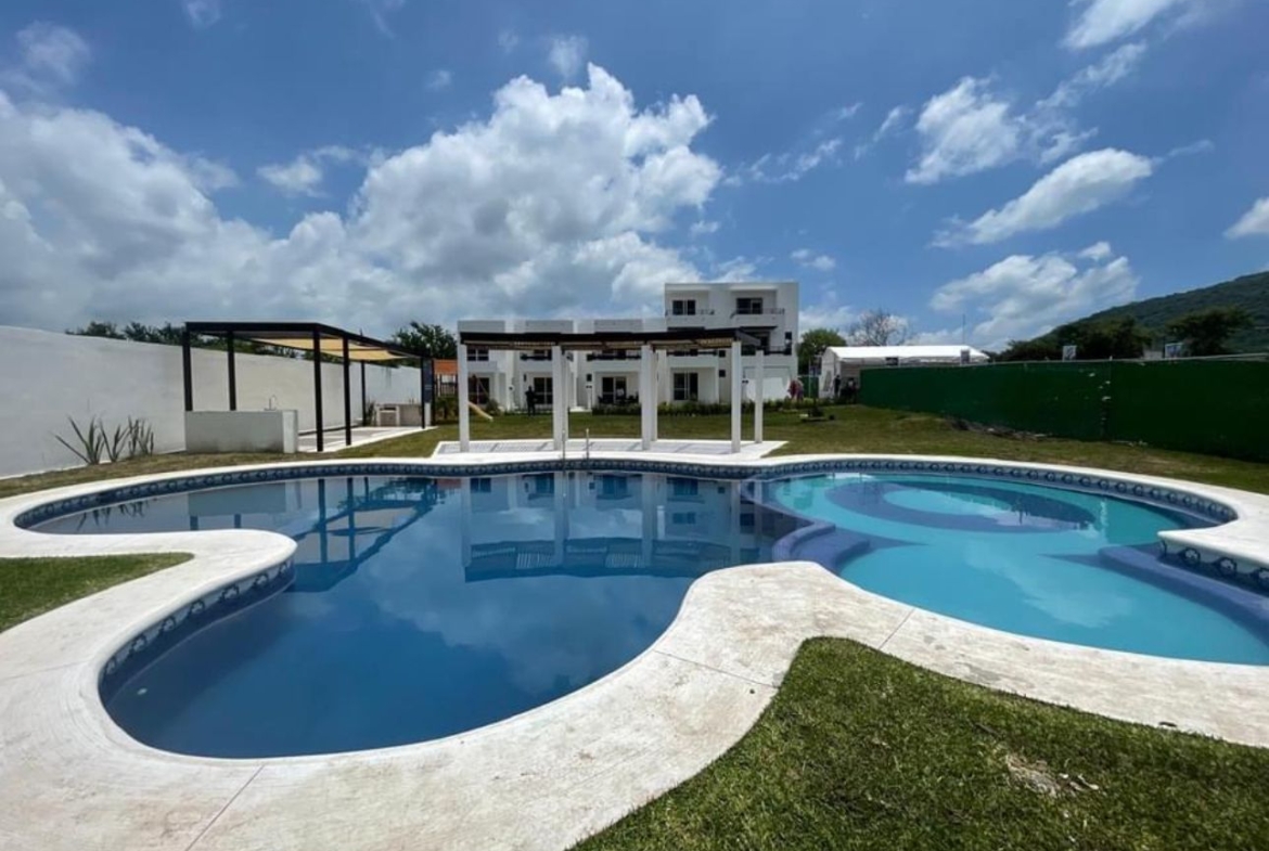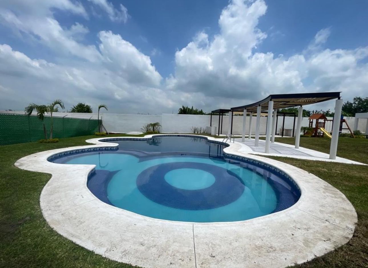 El fraccionamiento cuenta con alberca, brindando un espacio de convivencia y descanso para residentes.