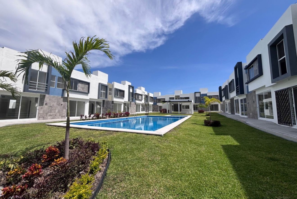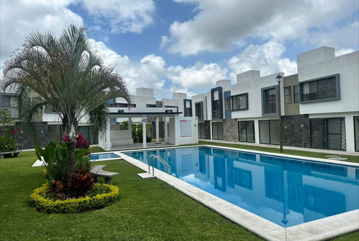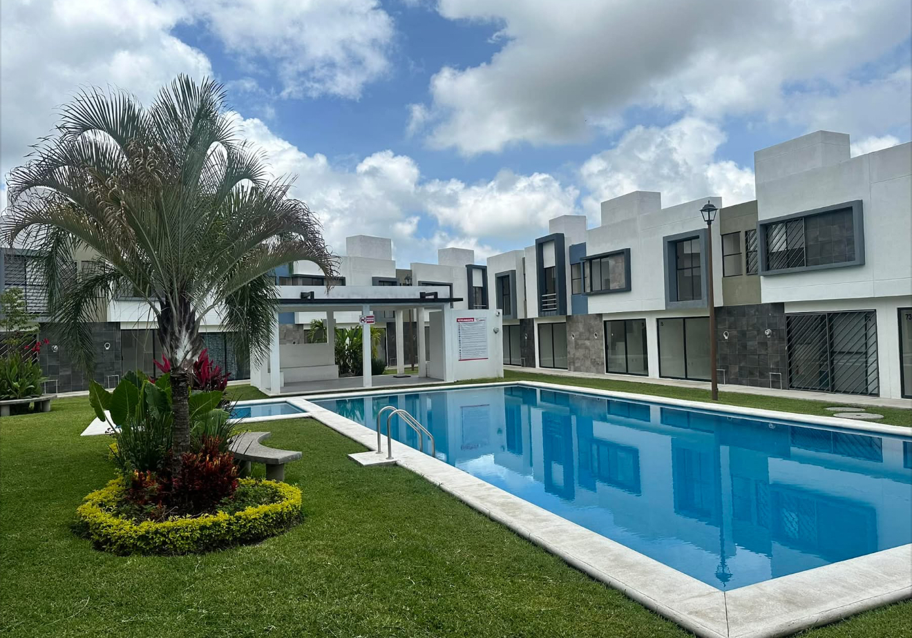 El desarrollo ofrece amenidades como alberca, palapa y seguridad dentro del fraccionamiento, brindando un entorno cómodo y funcional para sus residentes.