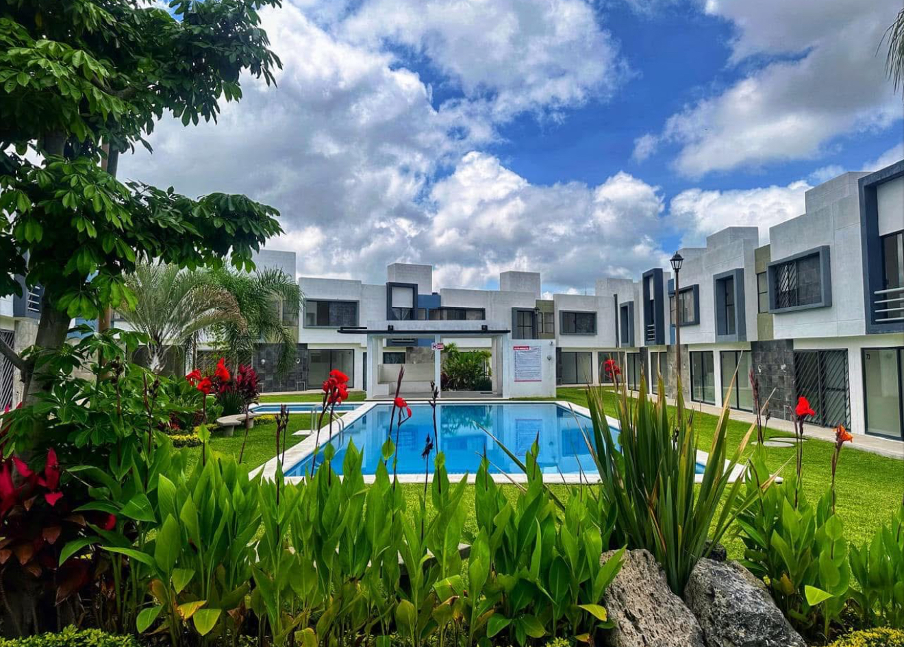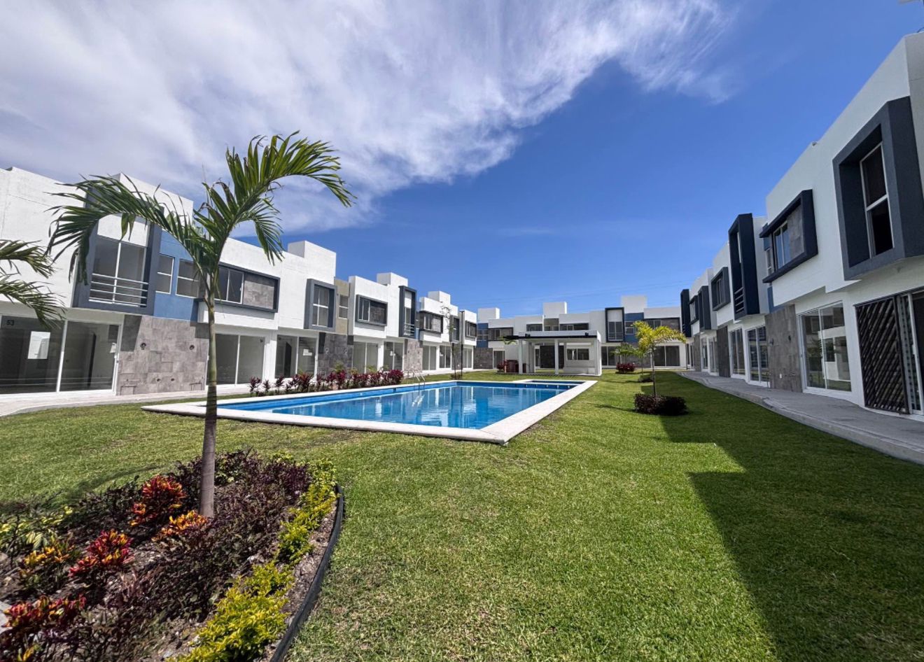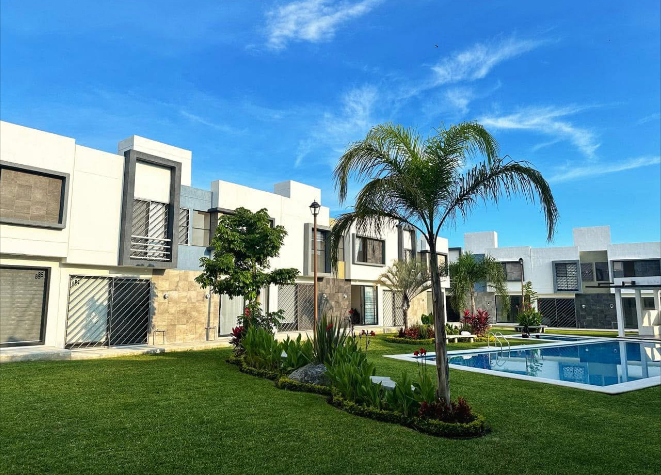 El desarrollo ofrece amenidades como alberca, palapa y seguridad dentro del fraccionamiento, brindando un entorno cómodo y funcional para sus residentes.