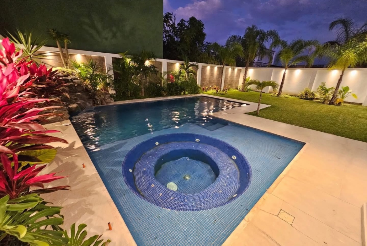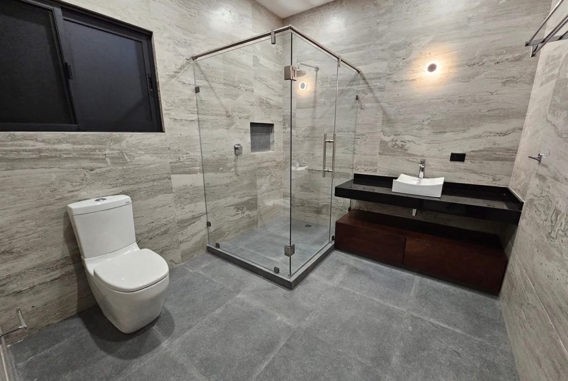 Cuenta con 4 habitaciones, 5 baños completos, sala, comedor, sala de TV, terraza y balcón, además de una increíble área social con alberca con calefacción solar, jacuzzi y asador, ideal para reuniones y descanso 🌴☀️. Los acabados en mármol, el cuarto de máquinas, área de lavado y estacionamiento complementan esta propiedad de alto nivel.