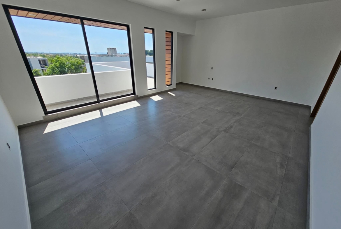 Dispone de 4 recámaras, cada una con baño completo, una espectacular sala a doble altura, comedor y cocina totalmente equipada.